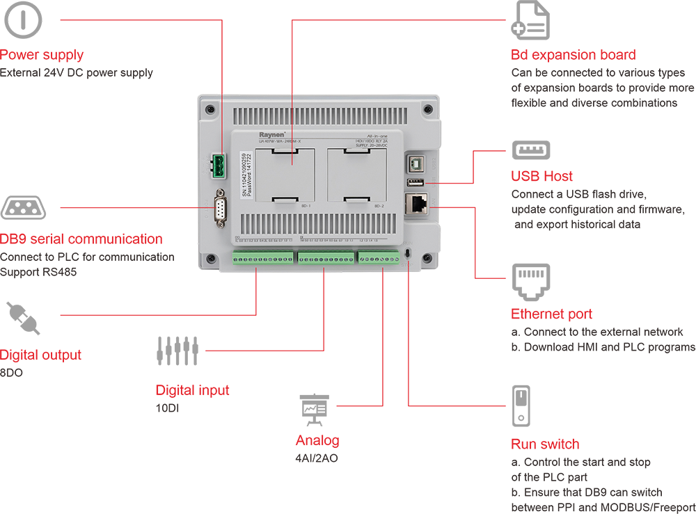 | Le port réseau peut télécharger PLC et HMI programmes | Prise en charge du périphérique série externe | Prise en charge de la programmation japonaise |