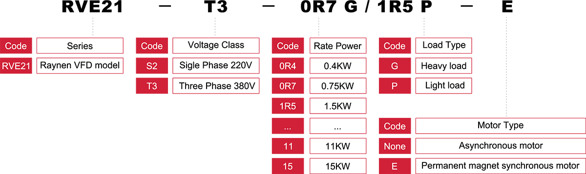 | Modèle | RVE21-T3-2R2G/3P ~ RVE21-T3-3G/4P |