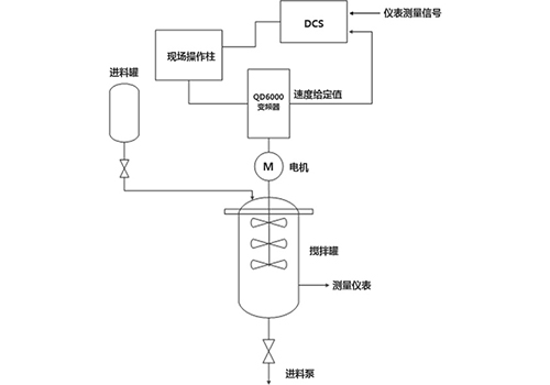 | 04 Présentation du système : Dans ce système, un inverseur RVE32 de 7,5 kW entraîne le moteur du mélangeur de 7,5 kW, entraîne les pales du ventilateur d'agitation pour remuer, puis remue uniformément à travers la vanne à vide, puis l'envoie à la pompe d'alimentation pour participer à la prochaine réaction chimique après avoir satisfait aux exigences. Le fonctionnement démarrage/arrêt du convertisseur de fréquence est réalisé via la colonne d'opération sur le terrain, et le convertisseur de fréquence renvoie la valeur réelle de la vitesse du moteur au DCS, et l'opérateur mesure le signal et la valeur de vitesse réelle en fonction de l'instrument du réservoir de mélange. Émettez une commande au variateur de fréquence pour augmenter ou diminuer la référence de vitesse du moteur. | | ||||||||||||||||||